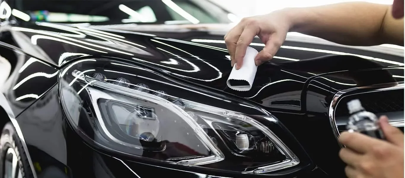 Multi-step paint prep, clay bar, and ceramic coating (1–5 years) for deep gloss, UV defense, and dirt protection. Price varies by vehicle size and coating level.